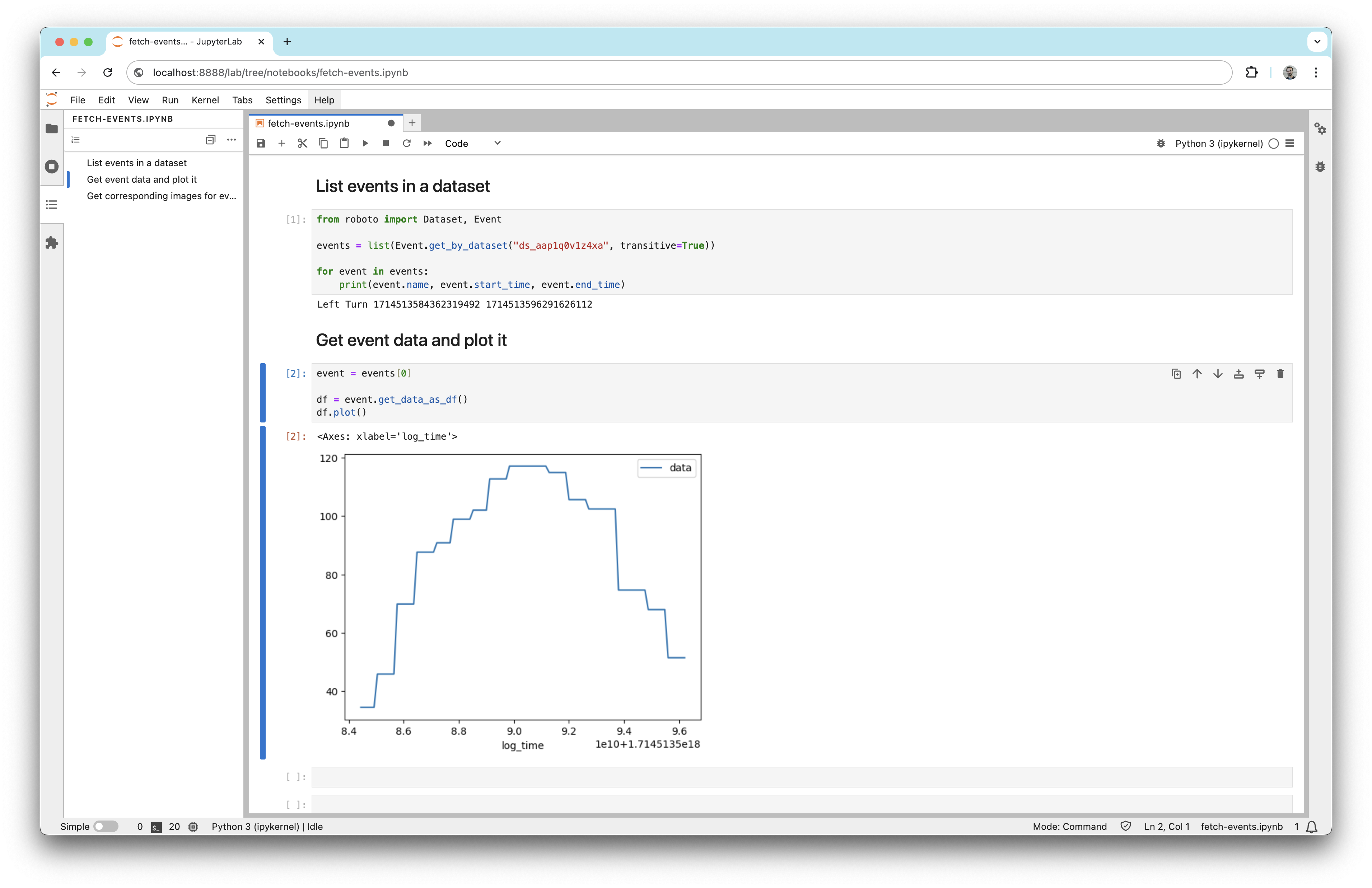 Roboto makes it easy to fetch slices of data that you’ve annotated with events using the Python SDK. You can also create events programmatically with the SDK using Event.create.