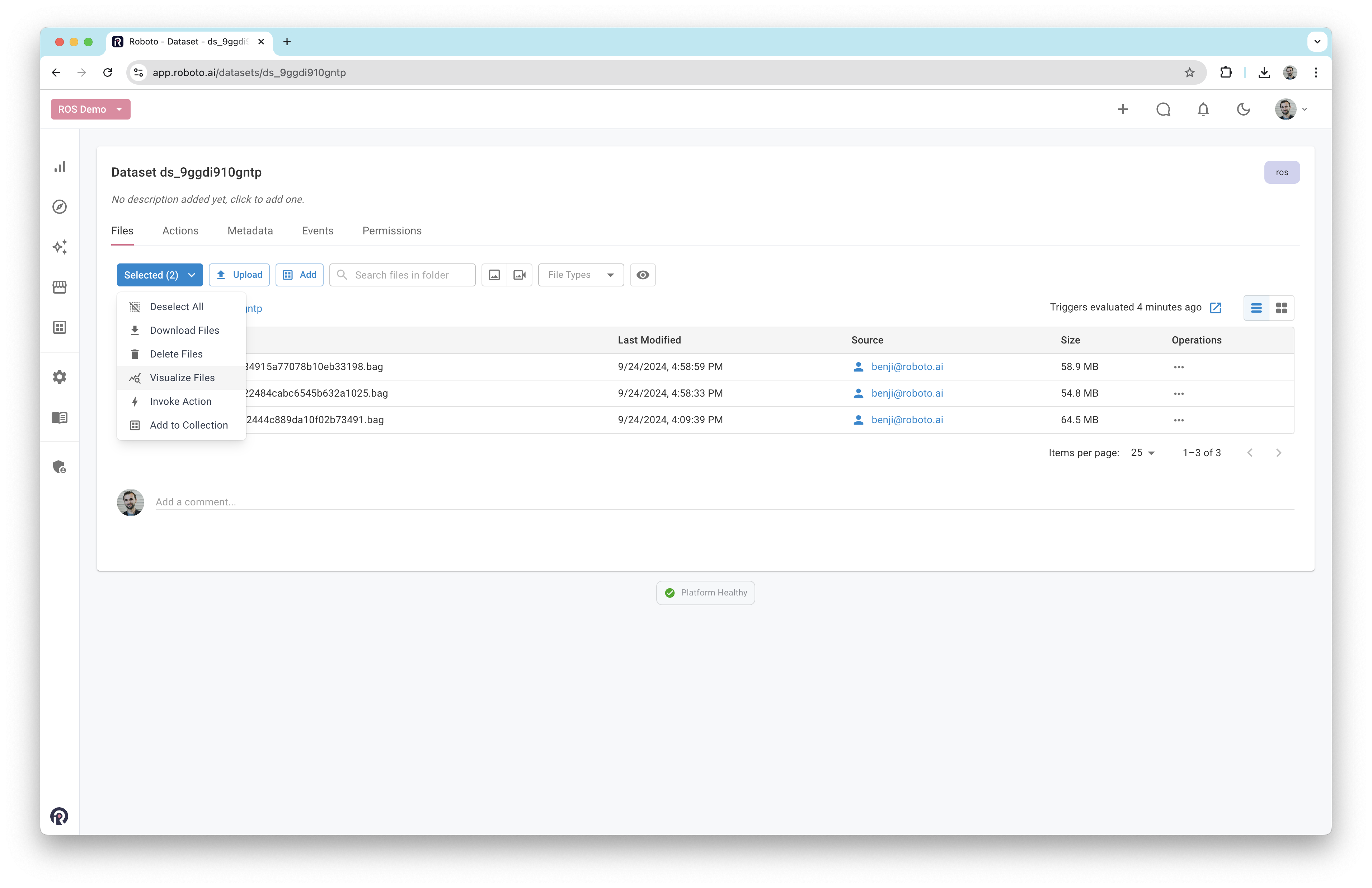 Select multiple log files in a dataset’s file browser